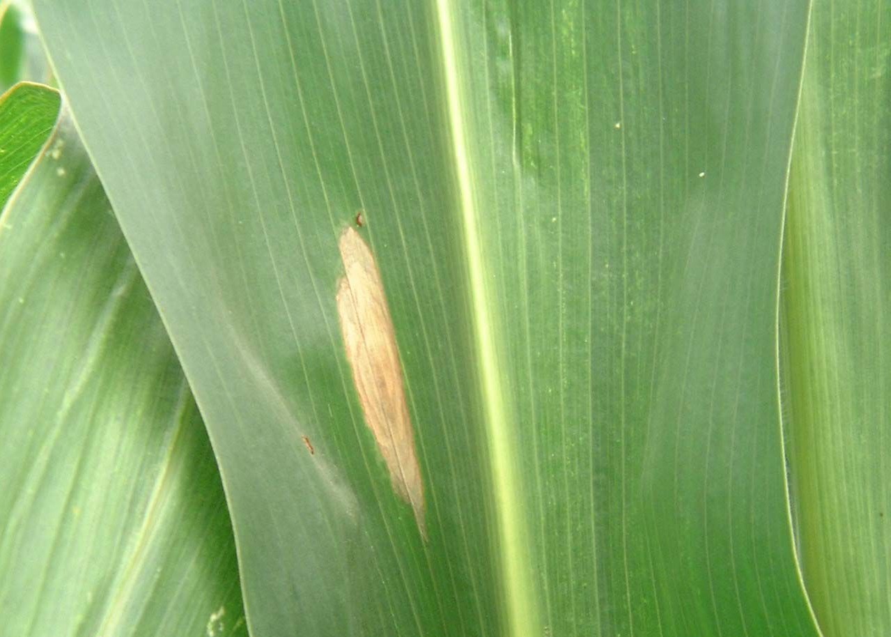 癥狀 主要發(fā)生在比較冷涼的深丘區(qū)和山區(qū),可危害所有玉米類型。 病菌主要危害葉片,也可侵染葉鞘和苞葉。植株感病后,常使葉片干枯,重者全株枯死,產(chǎn)量失收,輕者生長不良,造成減產(chǎn)。株高70~100厘米時(shí),先由基部葉片發(fā)病,漸及上部,嚴(yán)重時(shí)能遍及全株。發(fā)病初期,葉片上出現(xiàn)水漬狀青灰色或灰綠色斑點(diǎn),然后沿葉脈向兩端擴(kuò)展,形成棱形或長紡錘形大斑。斑中央淡褐色,邊緣暗褐色。病斑寬可達(dá)1~2厘米,長15~20厘米。天氣潮濕時(shí),病斑上可產(chǎn)生黑灰色霉?fàn)钗铮ǚ稚咦樱0l(fā)病嚴(yán)重時(shí),病斑增多,連成大片,整株枯死。